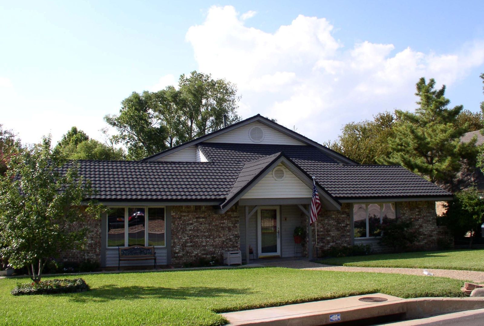 彩石金屬瓦是我公司最早開(kāi)發(fā)的新型產(chǎn)品 ,以鈦錏鋅合金為低表面附上加拿大考瓷顆粒永不褪色,鈦錏鋅金屬不同于鋁鋅金屬易被空氣中的氧化,而粘合膠是強(qiáng)度最強(qiáng)的膠不同于水性丙烯